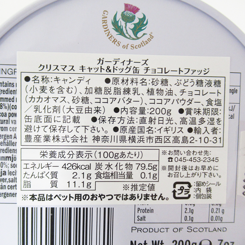 ガーディナーズ / クリスマス キャット&ドッグ缶チョコレートファッジ