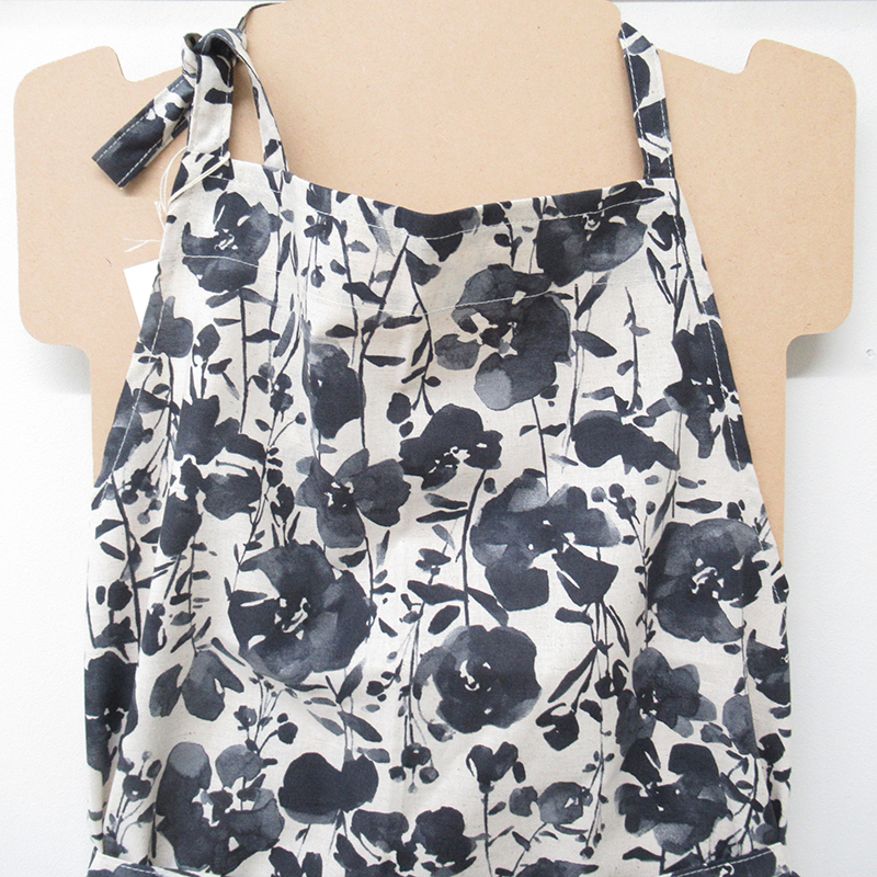 アトリエヌイ Nuuit 綿麻プリント フルエプロン/ブラック