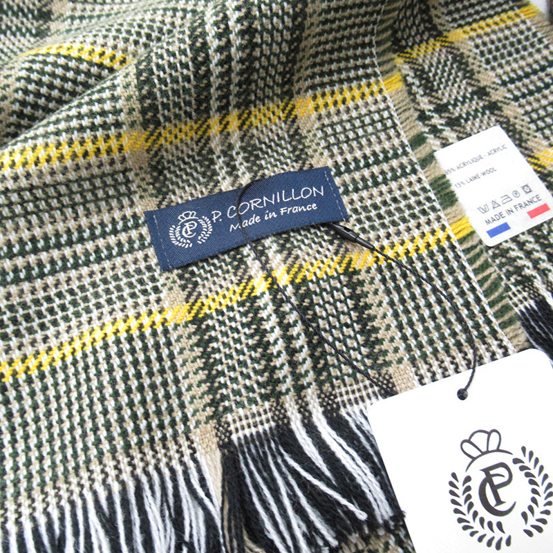 備考 | 【P.CORNILLON ピーコルニヨン】 フランス有数の織物の産地リヨンの郊外で1952年創業の生地メーカーがデザインするマフラーブランド。 毎年200種類以上の豊富なデザインを展開、ジャガード織をはじめ、ツイード、レース、無地、ヘリンボーン、 チェックなど何十色、何十パターンのデザインをトレンドにあわせた色使いのラインナップが楽しめます。 |