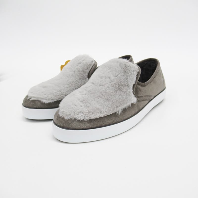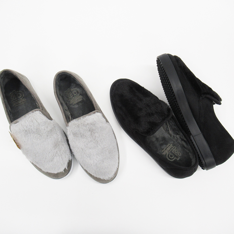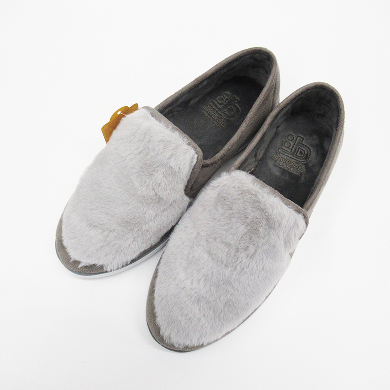 コロンとした丸いフォルムと暖かみのあるフェイクファーがかわいいスリッポン。