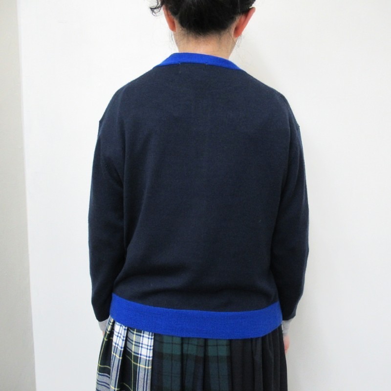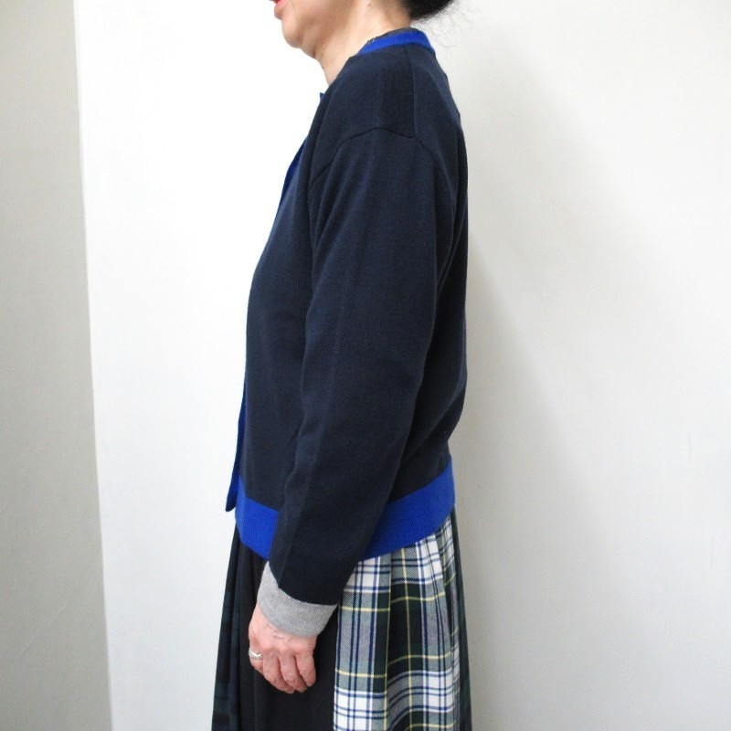 Vent d'oest カラーコンビネーションWOOL100%カーディガン /NV29