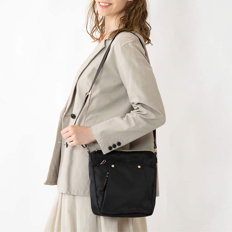 月の光のような優しい光沢感のある生地を使った実用性を兼ね備えた大人のためのベーシックシリーズ。ペットボトル収納可、サッと取り出したいアイテムに最適なスマートアクセスを叶える縦型デザイン。