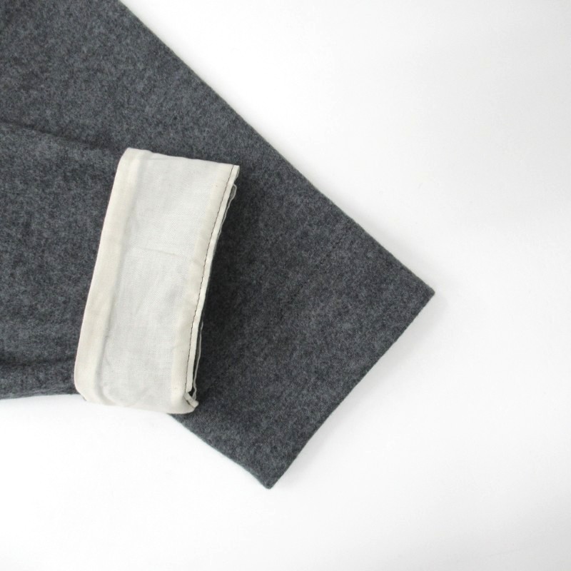 圧縮ウールでありながらソフトな風合い。目が詰まっているので暖かく着ていただけます。
