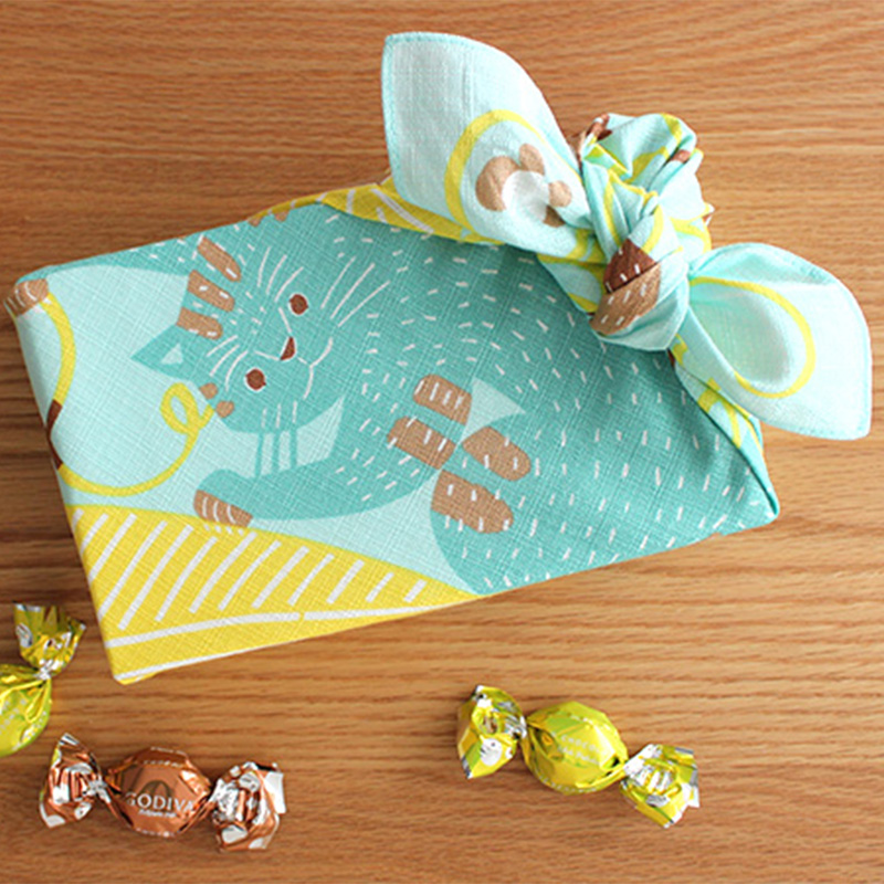 可愛いさの中に民藝や和のテイストも感じられる動物たちは、国内のみならず、海外でも高い人気を誇り、むす美の定番シリーズとなっています。50センチサイズは、お弁当包みやハンカチとしてはもちろん、ティッシュカバーやブッグカバーなどの使い方も人気です。