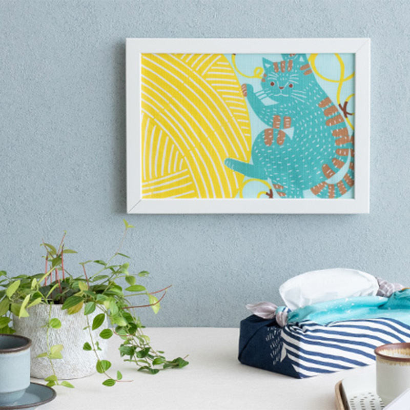 kata kataのお二人は、型絵染(かたえぞめ)という日本の伝統的な染色方法で布や紙を染め、手拭いや絵ハガキなどを制作されています。デザインから染色まで多くの工程を手作業で行い、手仕事の温かみのある作風が特徴です。