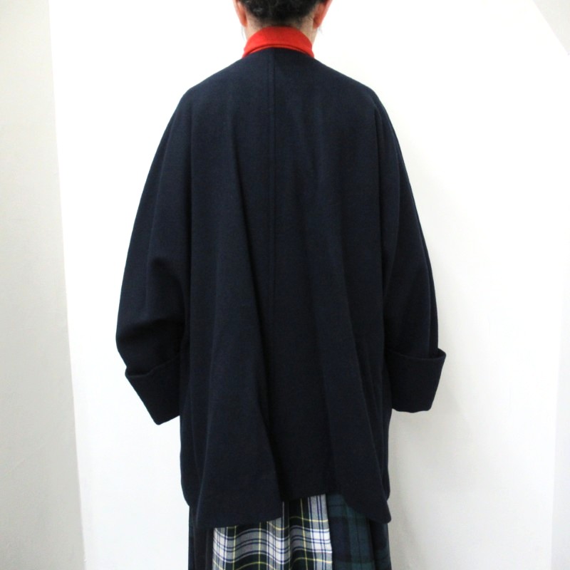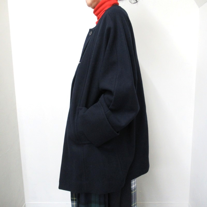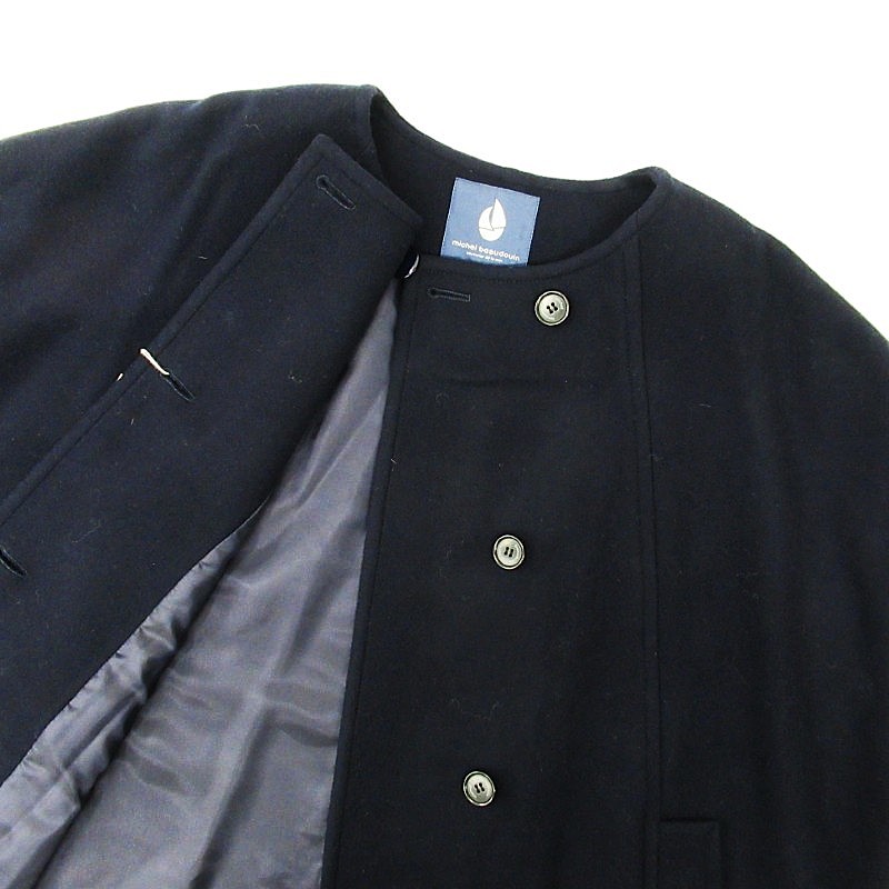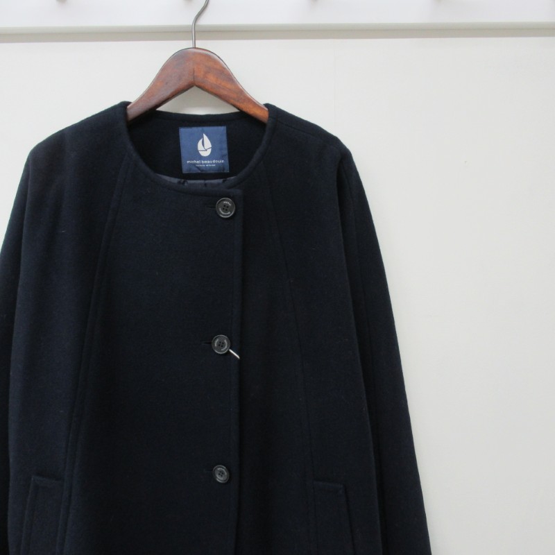 Michel Beaudouin ウール100%ノーカラーハーフコート/NV3 【日本製】