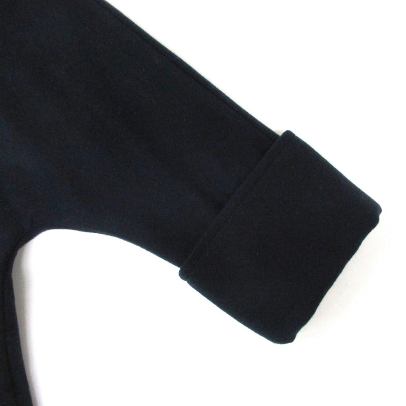 ウール100%ならではの上質な風合いで、太めに折り返された袖のデザインも上品な雰囲気。