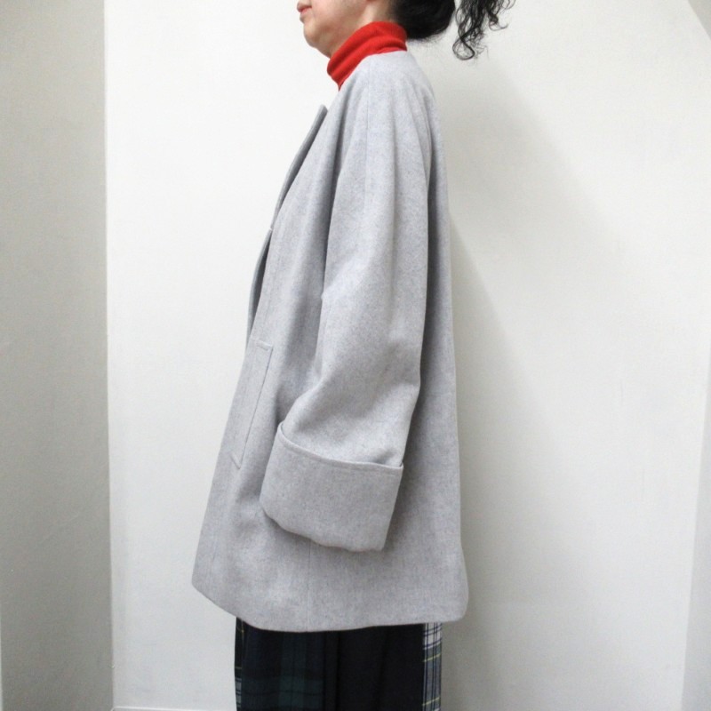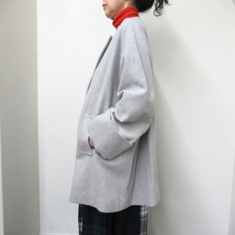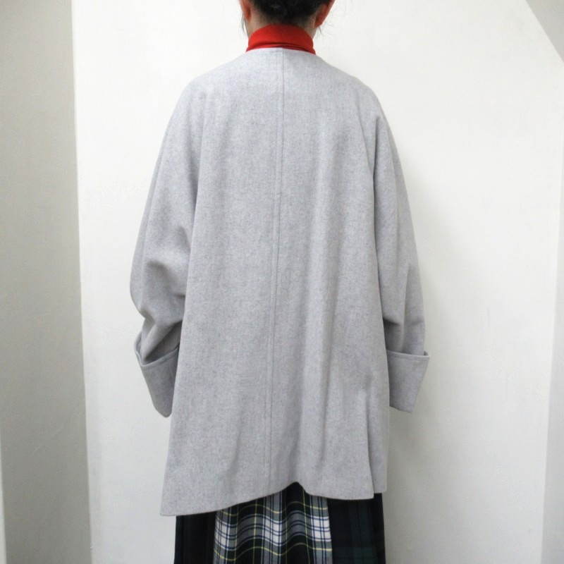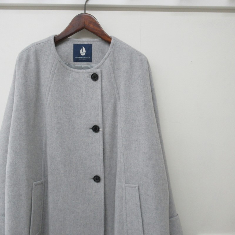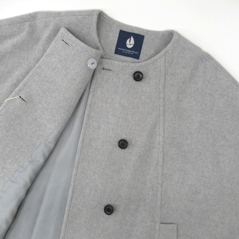 Michel Beaudouin ウール100%ノーカラーハーフコート /GY2 【日本製】