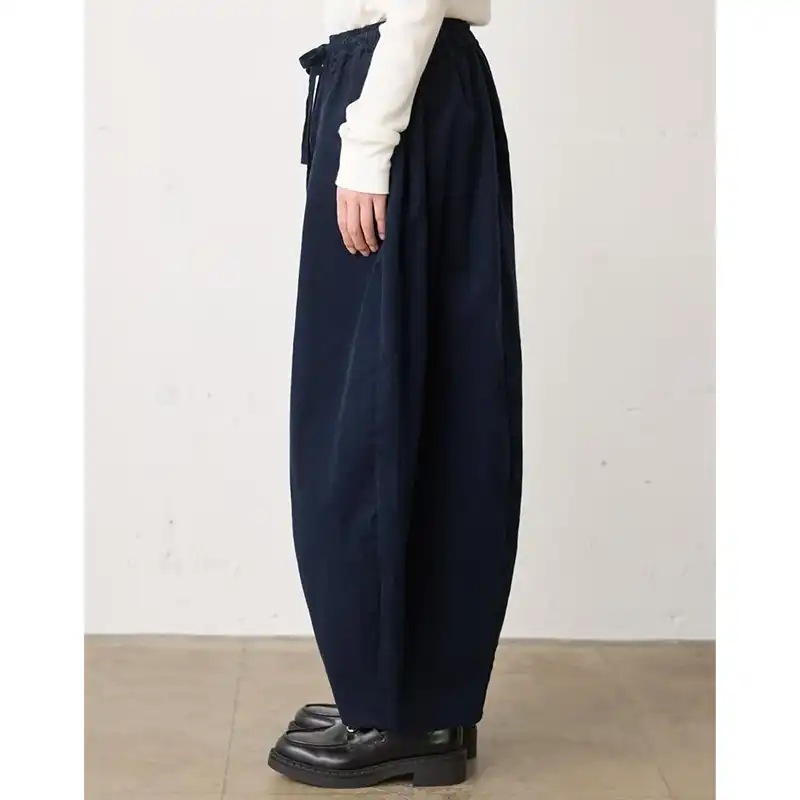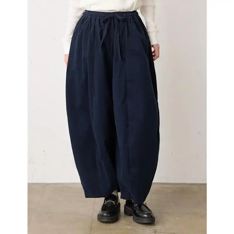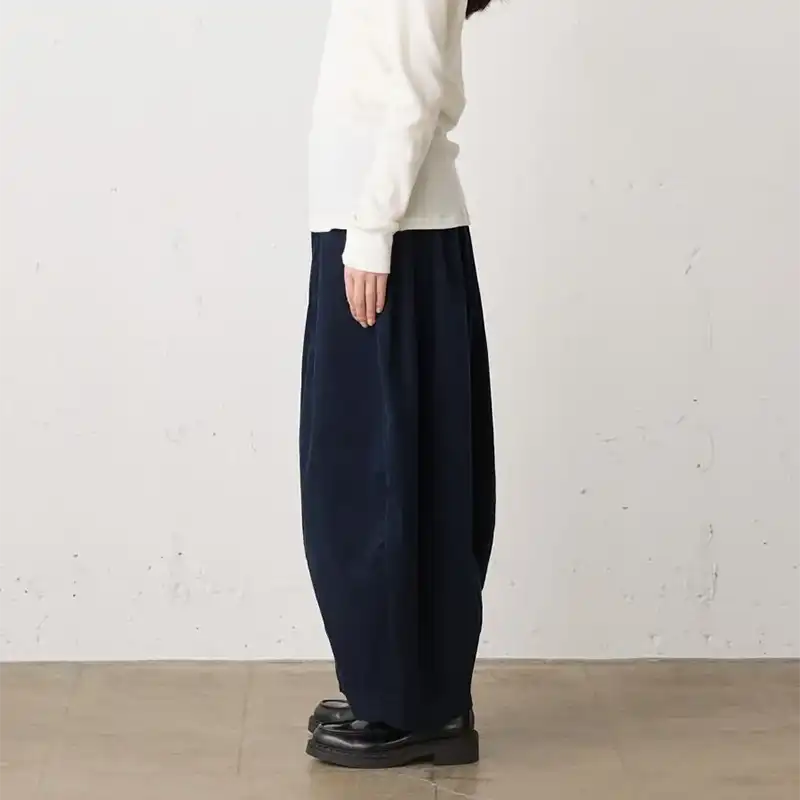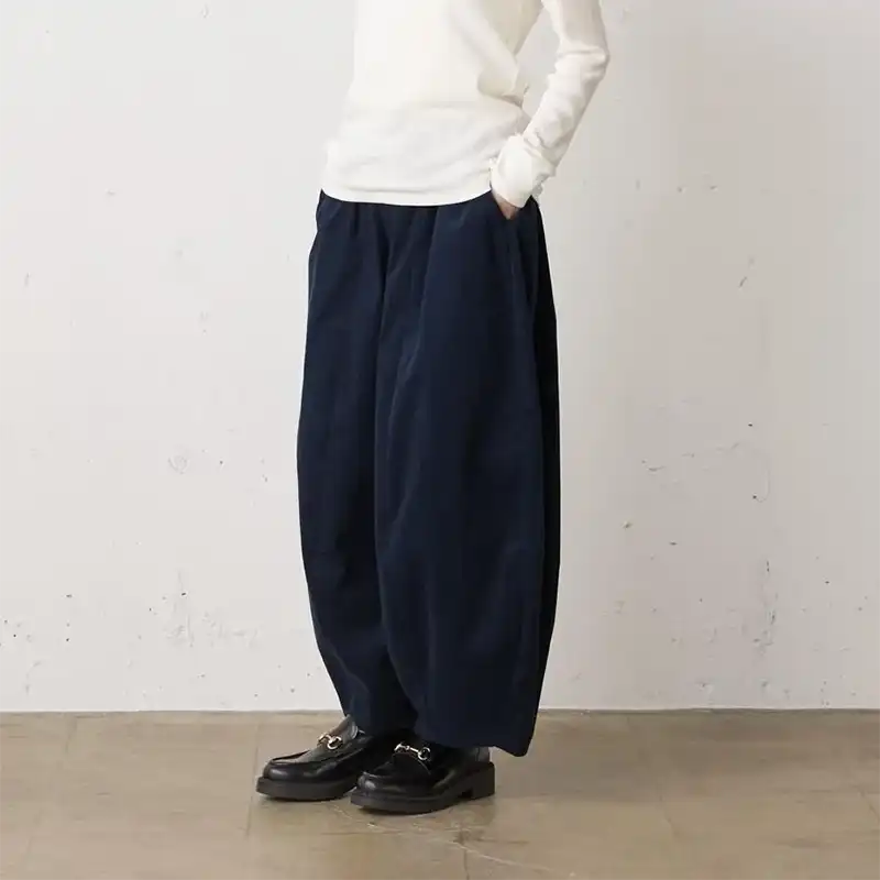 シャツにも使われるような軽やかな細畝コーデュロイ素材で仕立てたコクーンイージーパンツ。