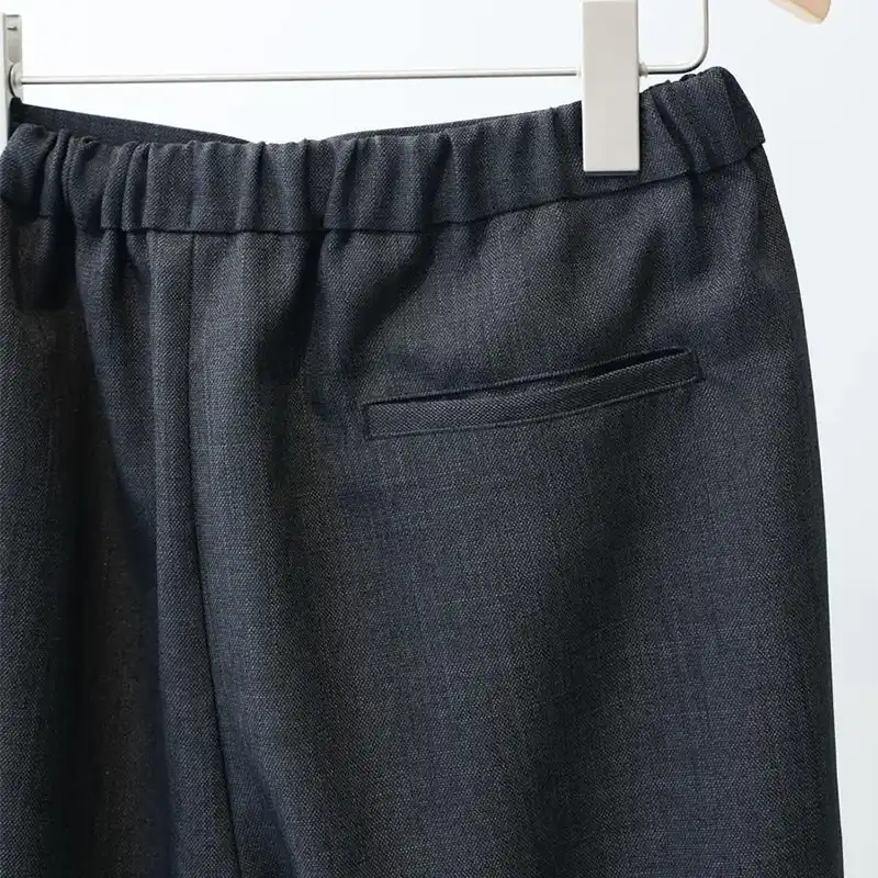 ウールツイードのような風合いを持つポリエステル素材を使用したスラックスパンツ。