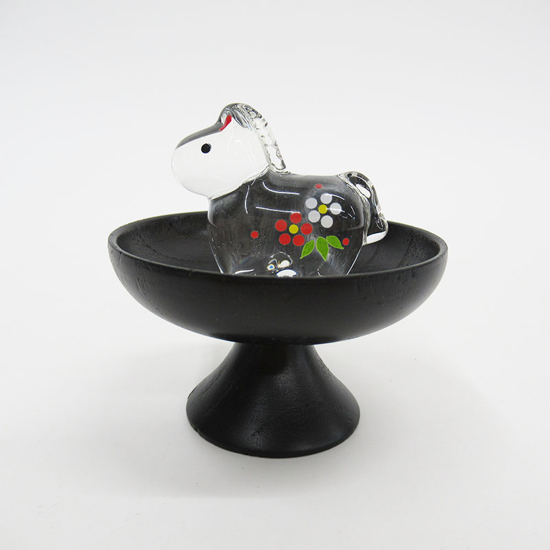 高台が高い杯のことを、「馬上杯」といいます。その名の通り、馬に乗っているときに、こぼれにくい形なんだとか。 盃としてだけでなく、前菜やお菓子を置くのにぴったりで、日常の食卓が、ちょっと華やかになる脚付きの漆の食器です。 小さな置物を置いてみたりと、インテリアとしてもお使いいただけますよ。