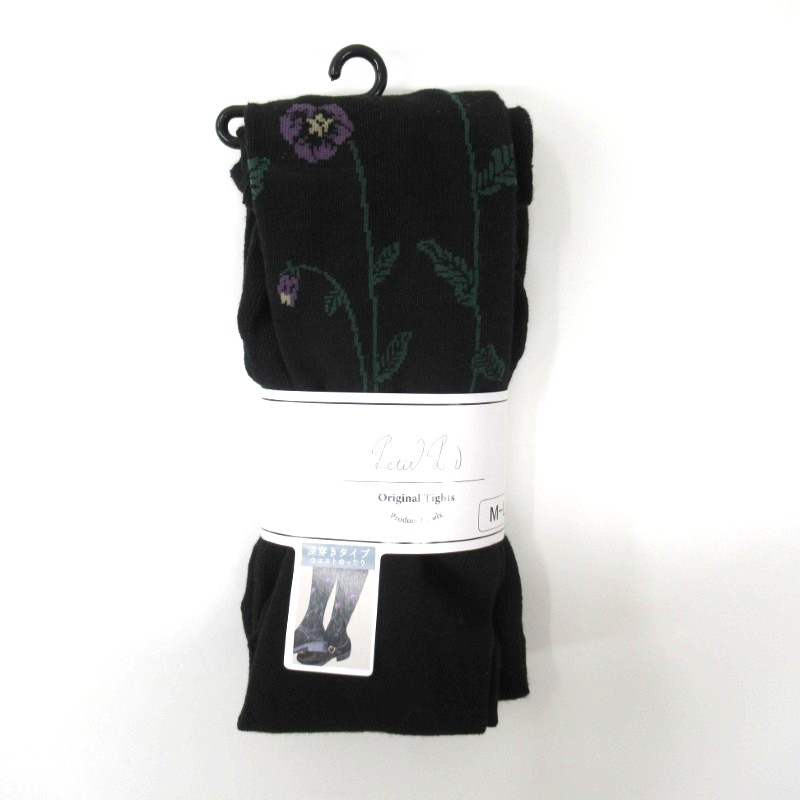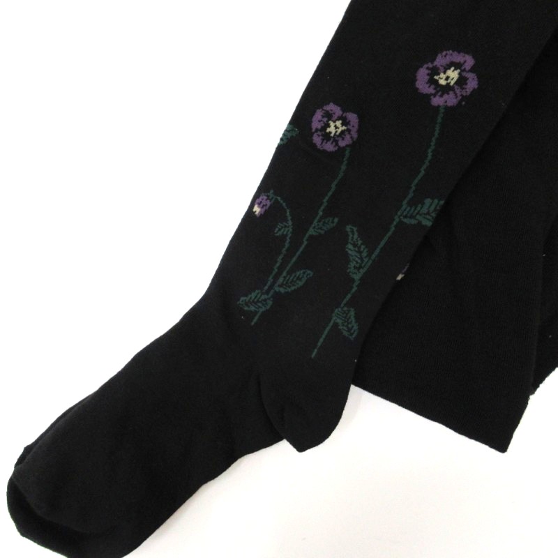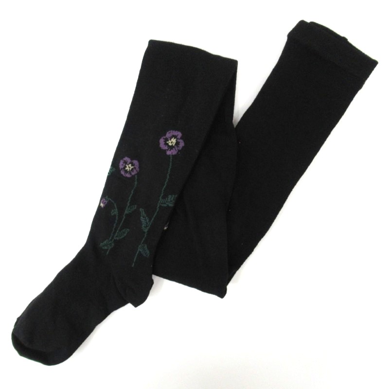 足もとからパンジーが咲いているような華やかなデザイン。ひざ下スカートの裾からチラリと見せたいタイツです。