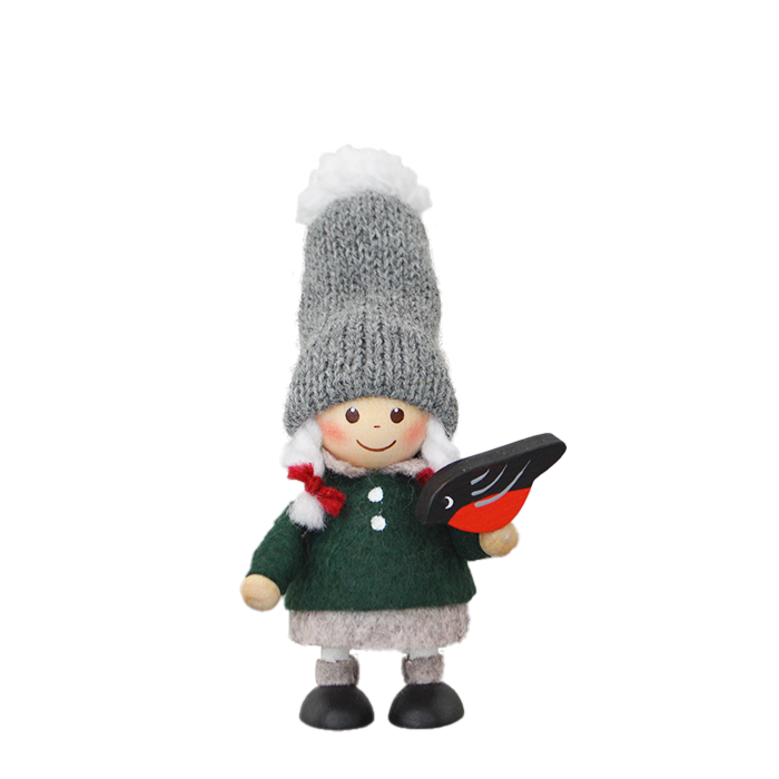 女の子の手にとまる小鳥は、ヨーロッパの森に幸せを告げるコマドリです。