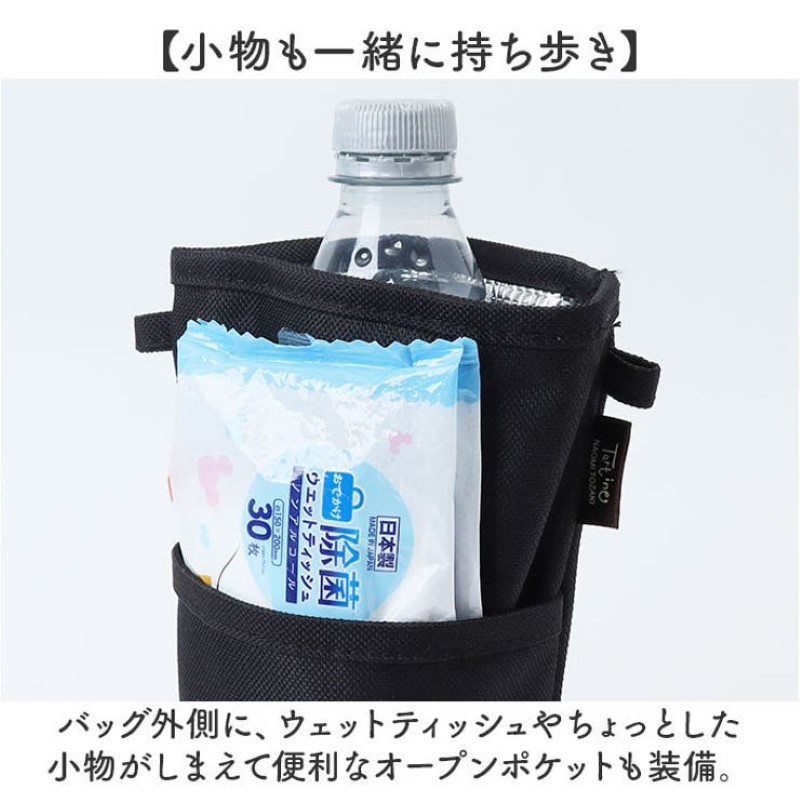 【小物も一緒に持ち歩き】バッグ外側に、ウェットティッシュやちょっとした小物がしまえて便利なオープンポケットも装備。