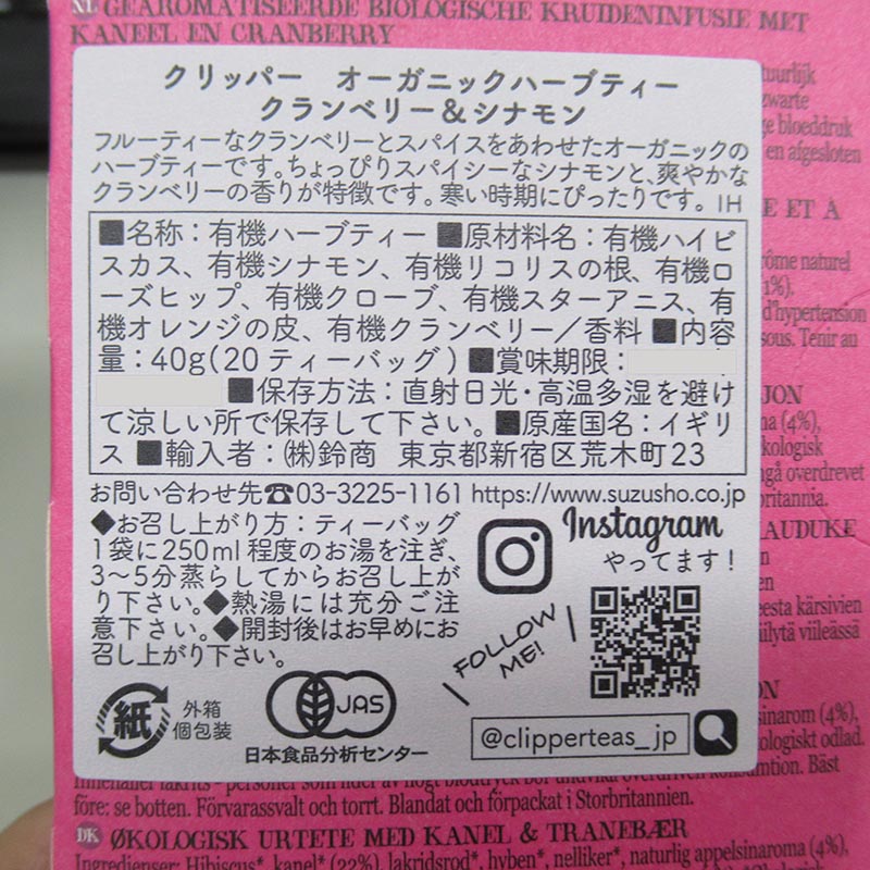 CLIPPER クリッパー オーガニック ハーブティークランベリー&シナモン20P