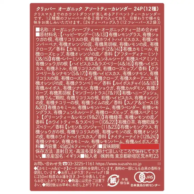 CLIPPER クリッパー オーガニック アドベント アソートティー24P