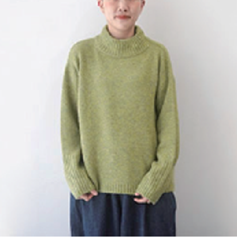 適度にゆるい締め付け感が気にならないハイネック、チクチク感のないリラックスした着心地、ほどよいゆとりがありながら、ストンとした落ちのあるシルエットはスポっと着るだけでコーディネートが決まる1枚です。