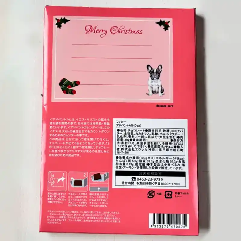 12月1日から1日に1個ずつ窓を開け、チョコレートを食べながらクリスマスが来るのを楽しみに待ち望むための商品です。