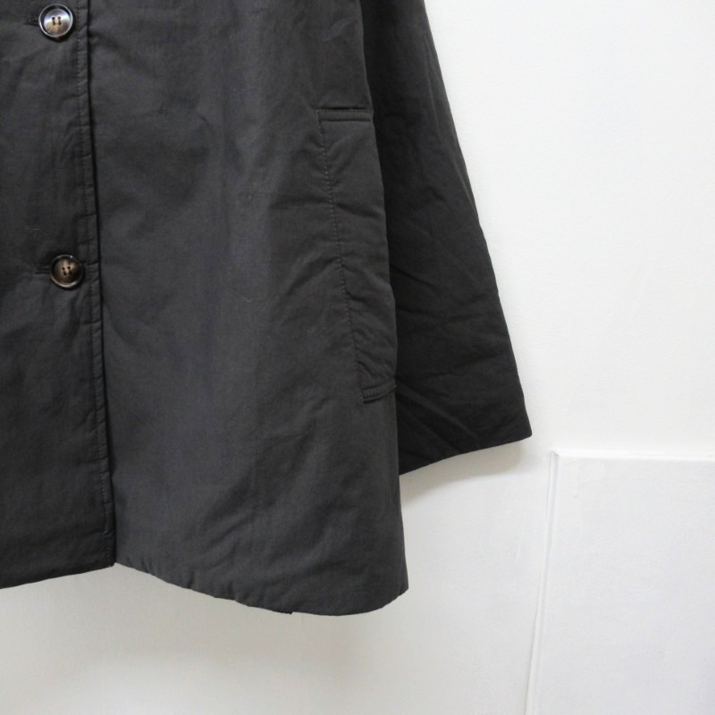 細番手の糸を高密度に織った適度なハリ感がある洗いがかったダンプ素材を表面に使用し、裏地にキルティング加工を施した中綿Aラインフード付きコートです。