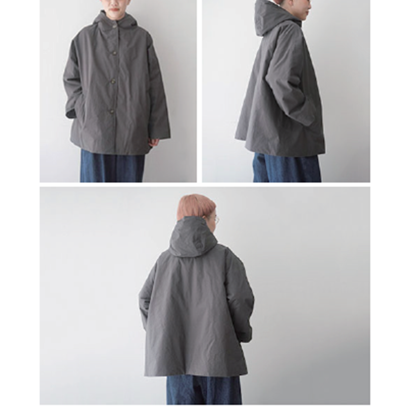 mao made ミディアム丈Aラインフード付きコート /CH90