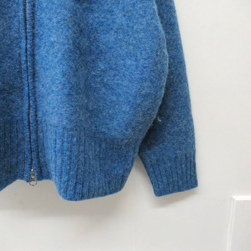 RWS WOOL(羊と大地の管理をした農場で生産された羊毛原料が最終工程まで正しく管理されているかを証明する国際的な基準を満たした糸)を使用した編地に圧縮をかけたダブルジップクルーネックブルゾンです。