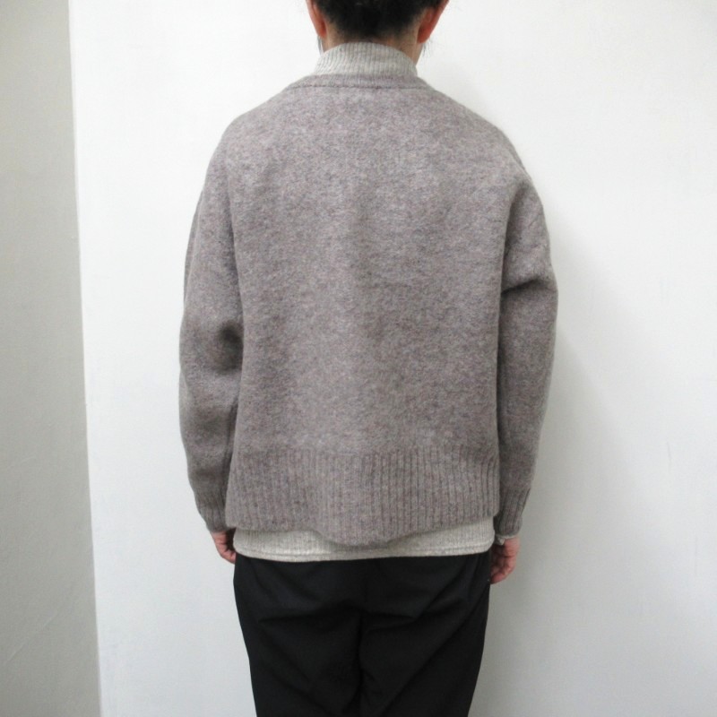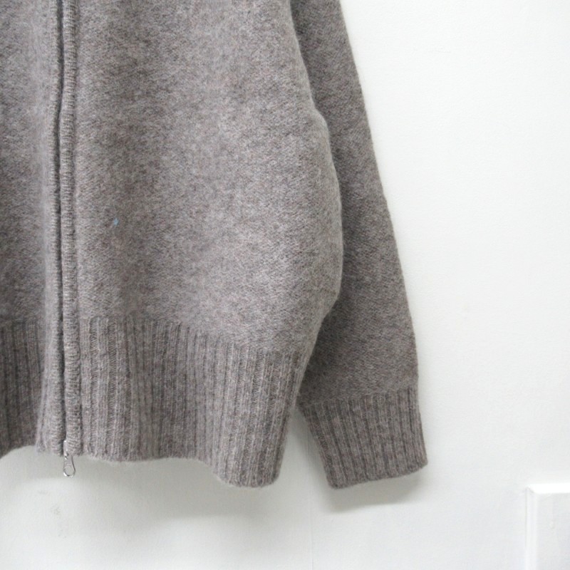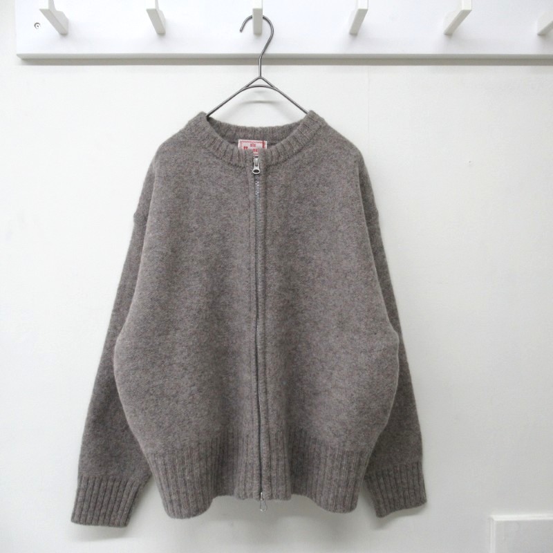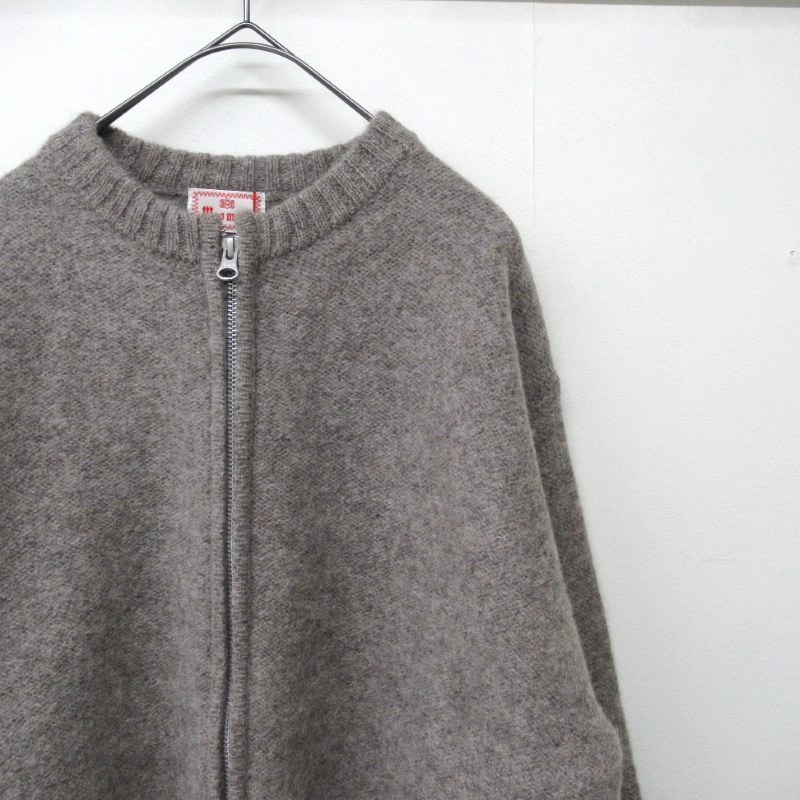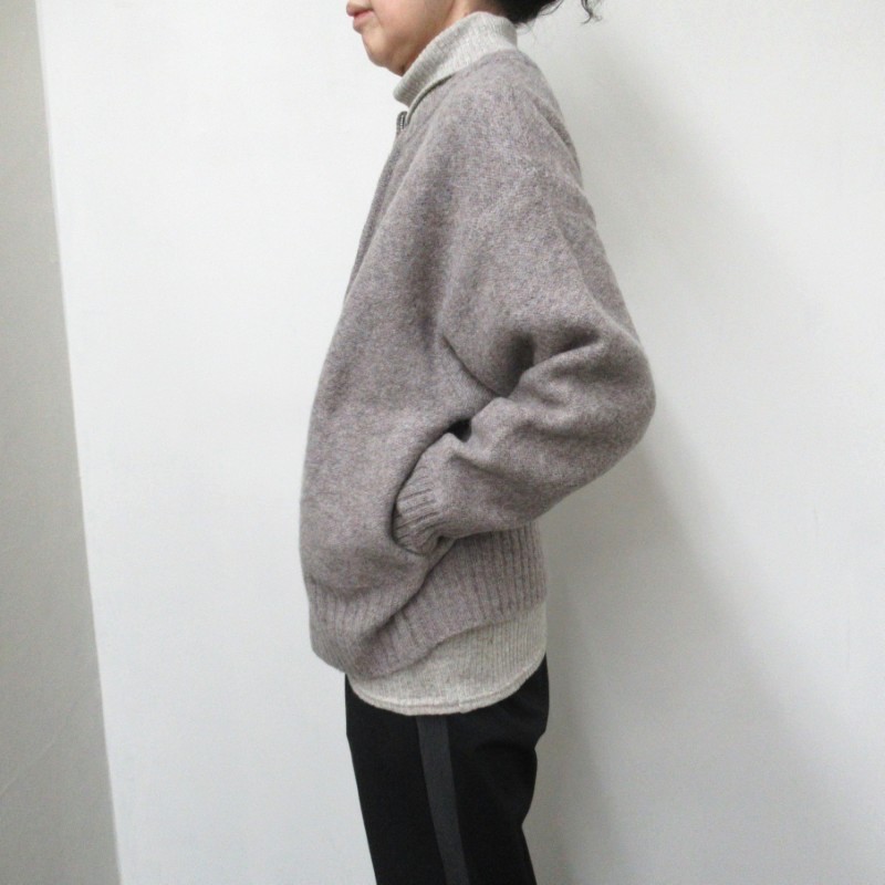 RWS WOOL(羊と大地の管理をした農場で生産された羊毛原料が最終工程まで正しく管理されているかを証明する国際的な基準を満たした糸)を使用した編地に圧縮をかけたダブルジップクルーネックブルゾンです。