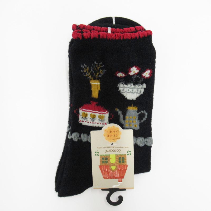 STREAM ふあふあシャギーソックス クルー/キッチン柄 BK