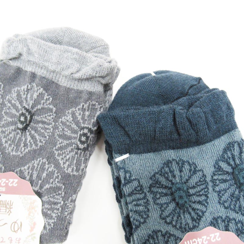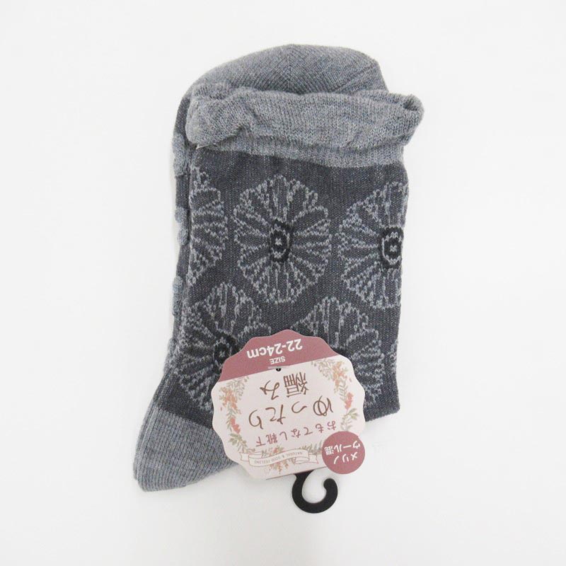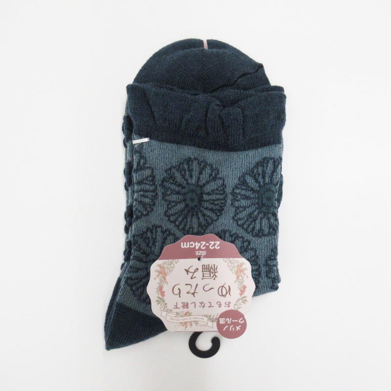 おもてなし靴下 クルーゆったり編み /花柄ピコット GR