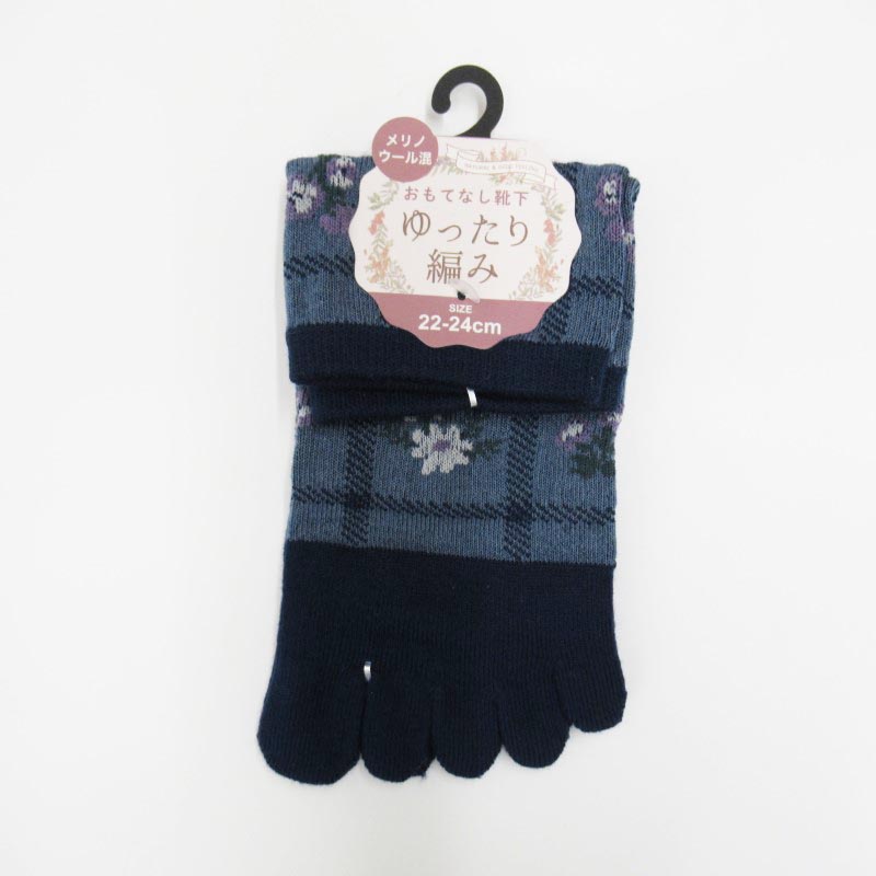 おもてなし靴下 クルー ゆったり編み 5本指 /フレーム花柄