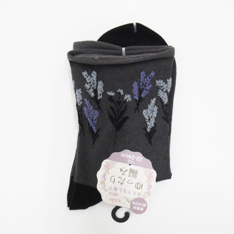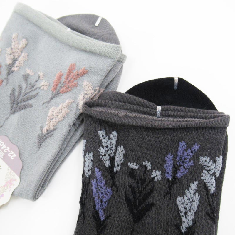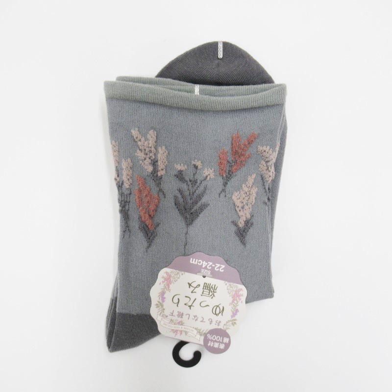 おもてなし靴下 クルーゆったり編み /草花 GY