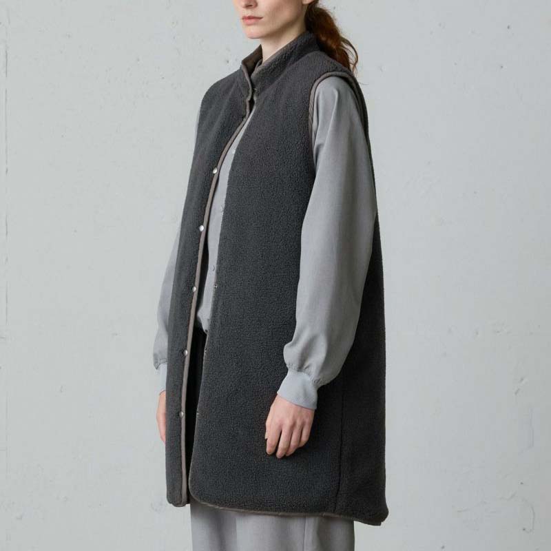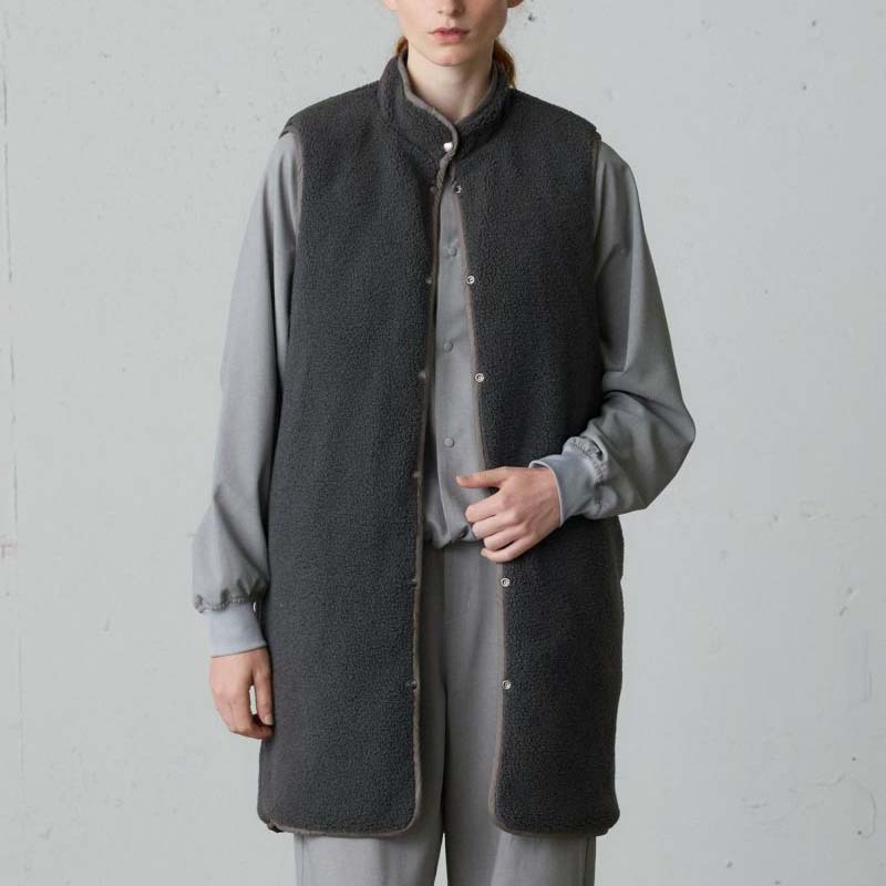 ボア面とのリバーシブル可能なキルティングベストでコーディネートの幅を広げてくれます。