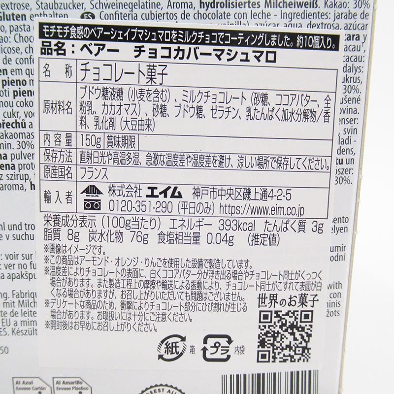 モチモチ食感のベアシェイプマシュマロをミルクチョコでコーティングしました。