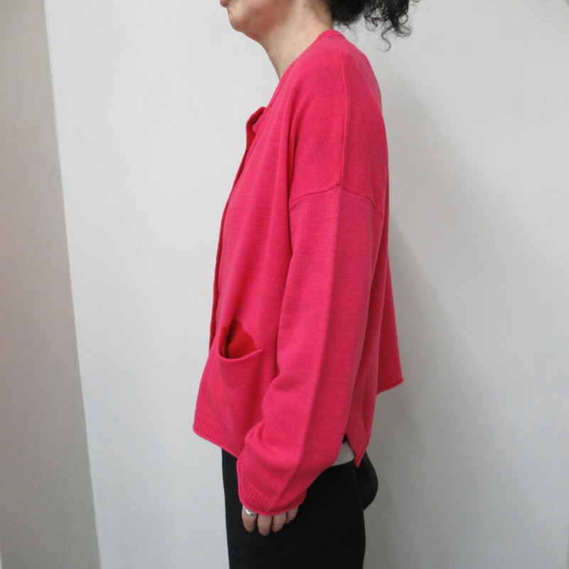mao made 配色ポケット付きワイドカーディガン /PK*RD45