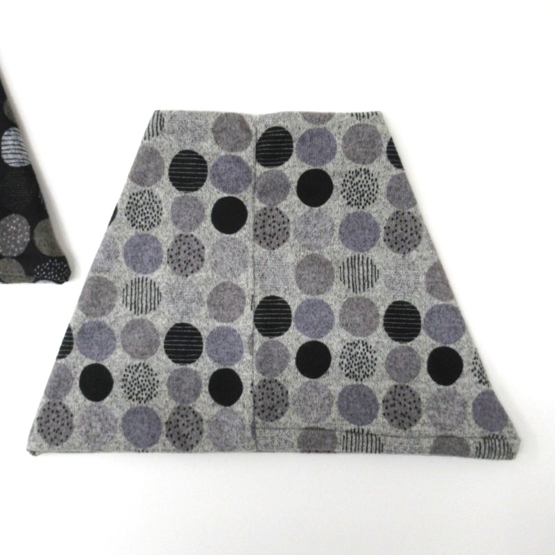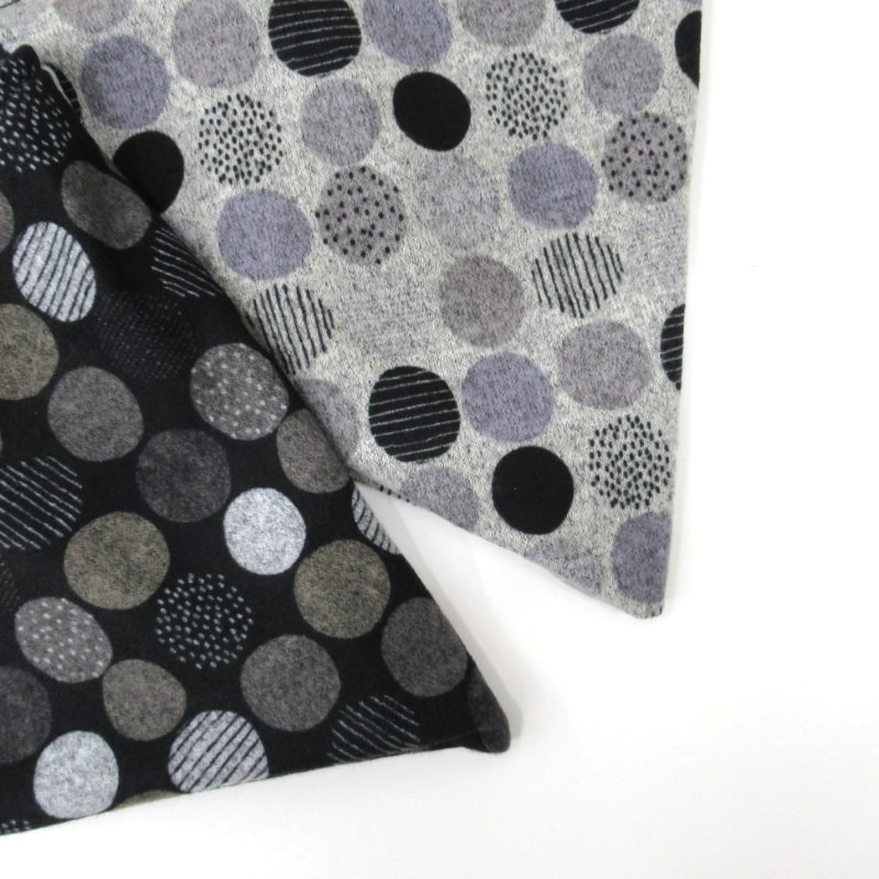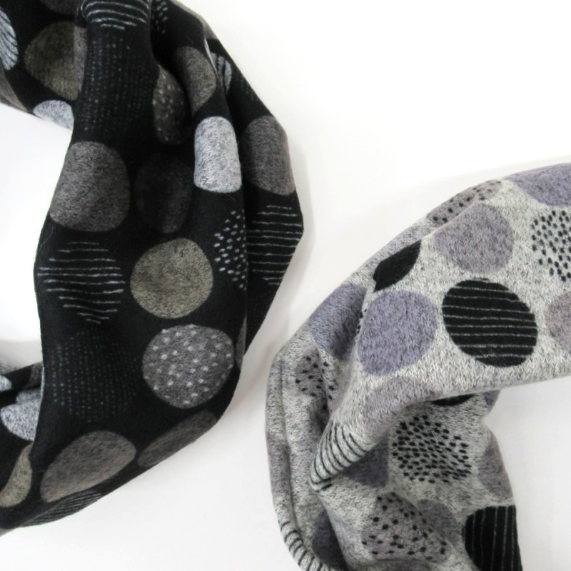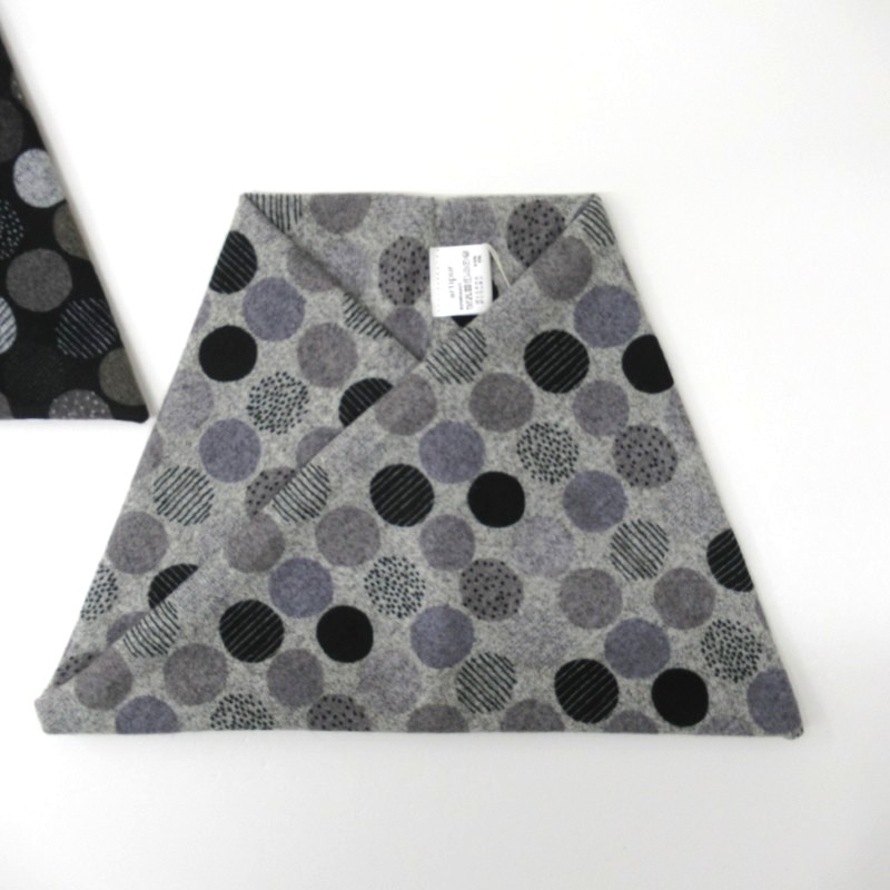 上品なモノトーンカラーに、リズミカルなドット柄。 ネックウォーマーとしても使える、やわらかなスヌードです。