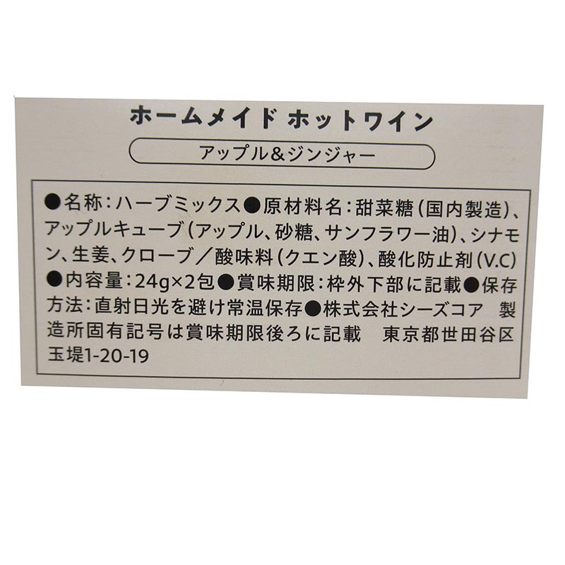 甜菜糖とアップルなどのドライフルーツとスパイスやハーブを加えたホットワインミックスです。鍋や電子レンジでワインと共に温めるだけで簡単本格ホットワインの出来上がり!お好みでレモンスライスを浮かべたり、甘さを調整してお召し上がりください。