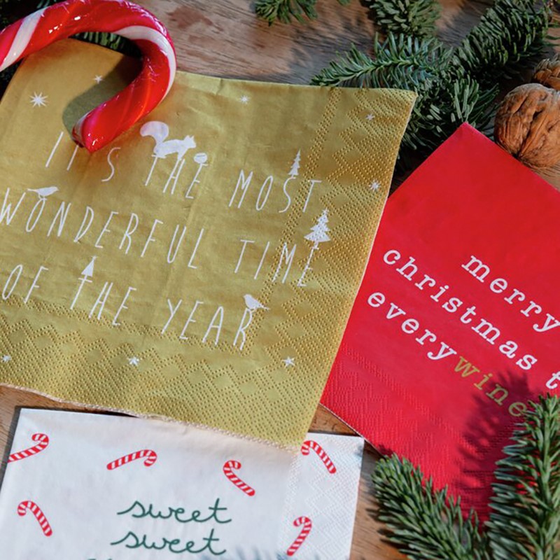 33cm角が四つ折りになった使いやすいサイズ感のペーパーナプキン。
