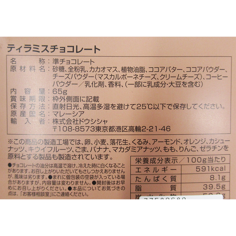 クリーミーな味わいが贅沢なティラミスミルクチョコレートです。