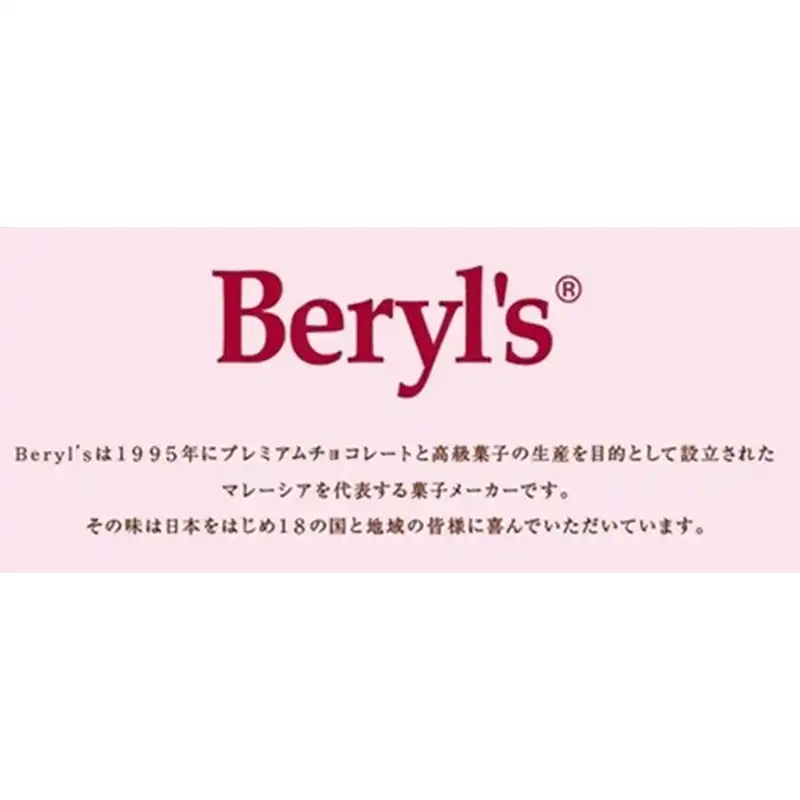 備考 Beryl’sは1995年にプレミアムチョコレートと高級菓子の生産を目的として設立されたマレーシアを代表する菓子メーカーです。その味は日本をはじめ18の国と地域の皆様に喜んでいただいています。
