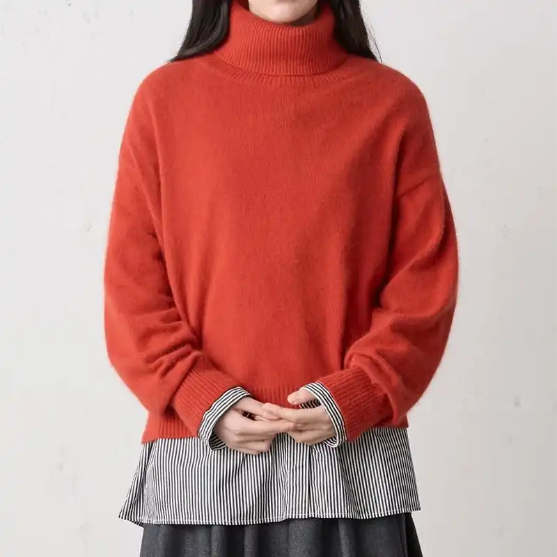 ふわっとした柔らかさと、軽やかな着心地が魅力のハイネックプルオーバーです。