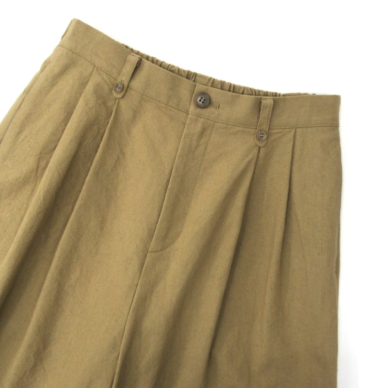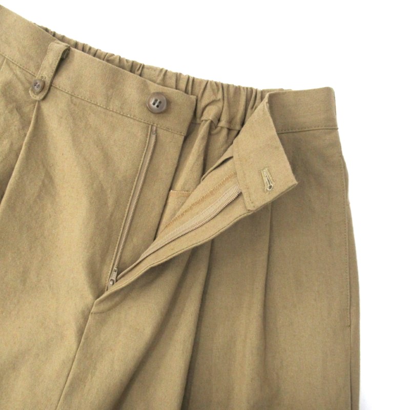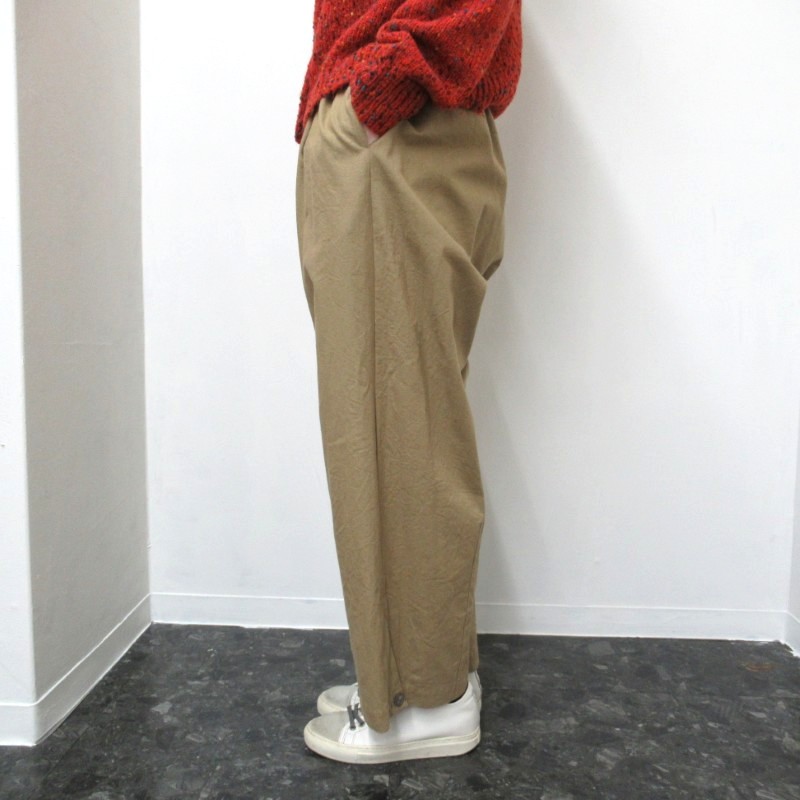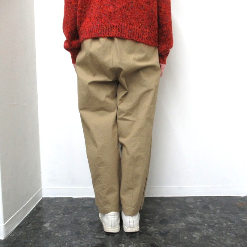 裾やウエストにデザインが盛り込まれたタックパンツ。
