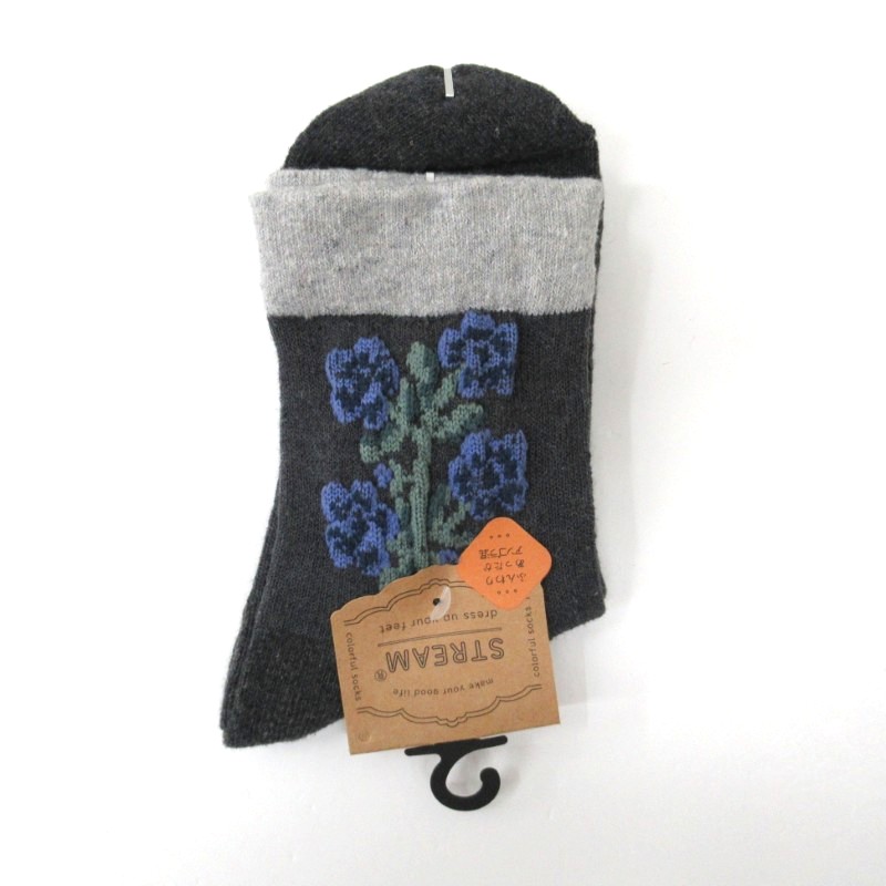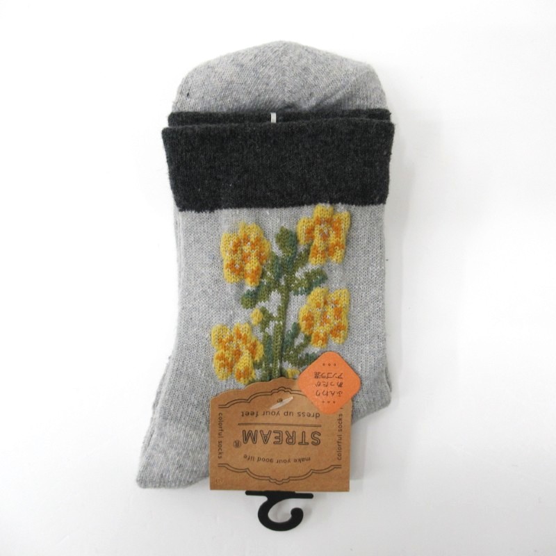 STREAM あったかアンゴラ混 サイド花柄ロークルーソックス/GY