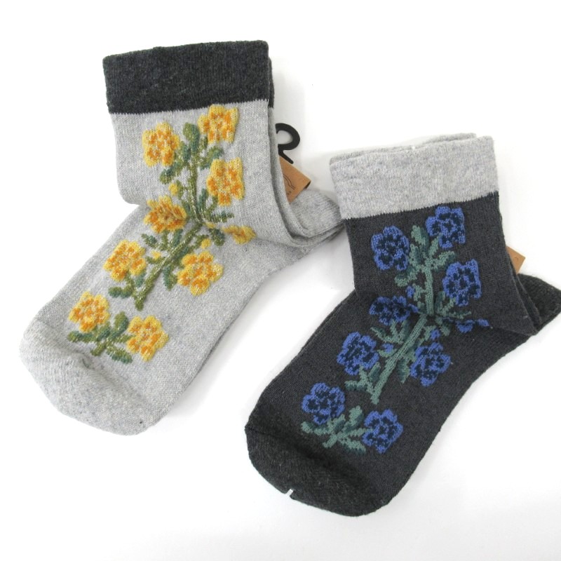 STREAM あったかアンゴラ混 サイド花柄ロークルーソックス