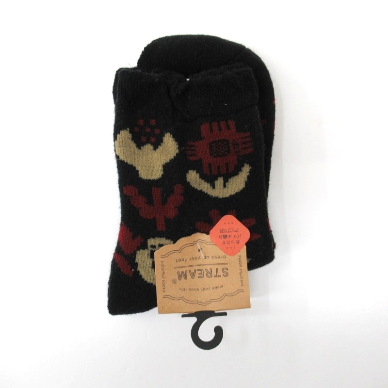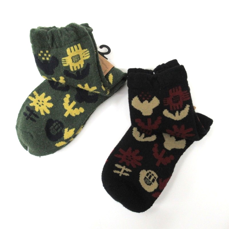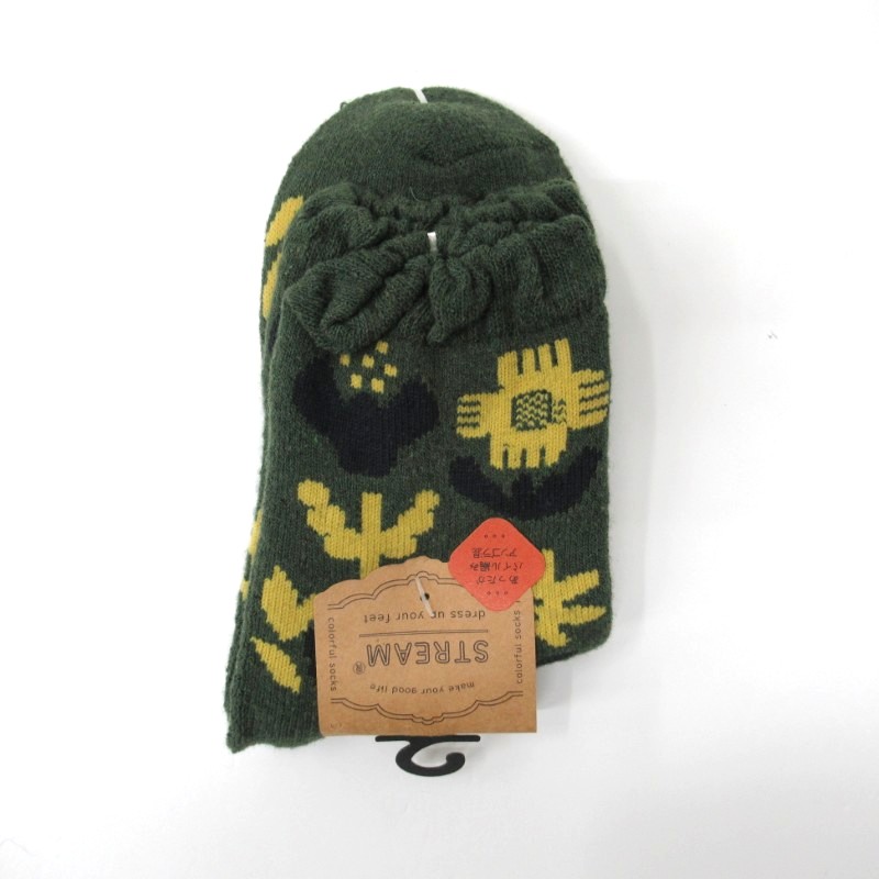STREAM あったかアンゴラ混 花柄パイルクルーソックス