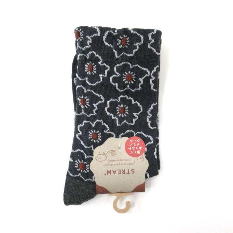 STREAM あったかメリノウール 花枠フロート柄クルーソックス