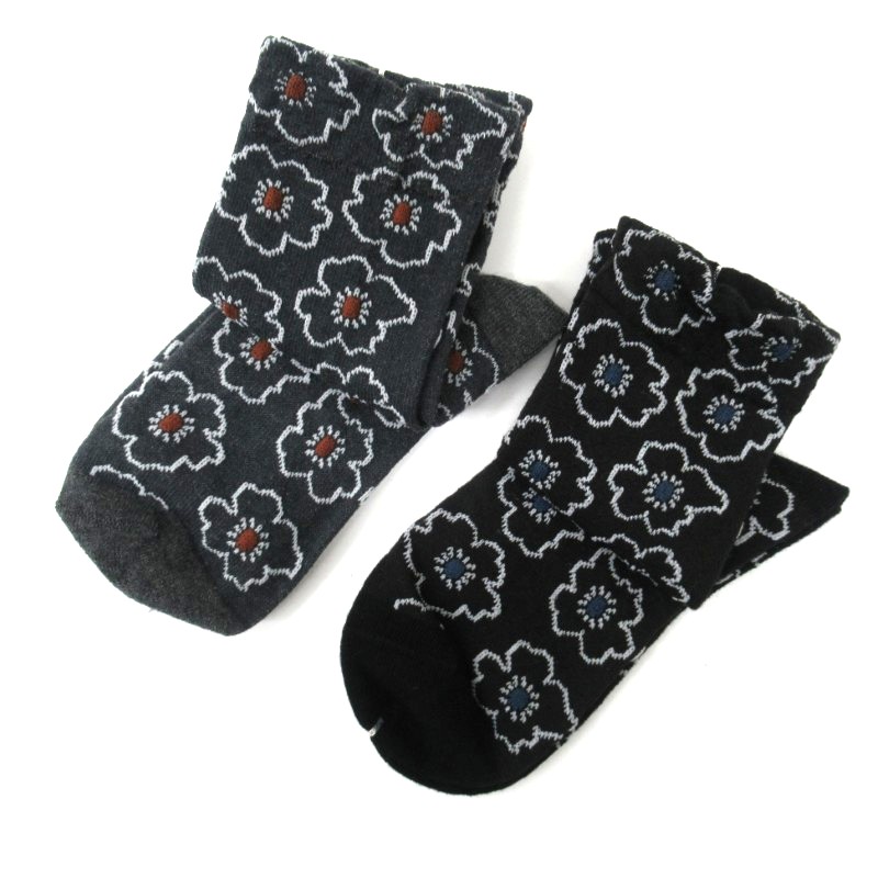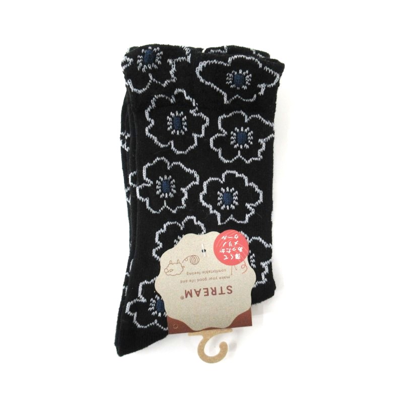 STREAM あったかメリノウール 花枠フロート柄クルーソックス/BK