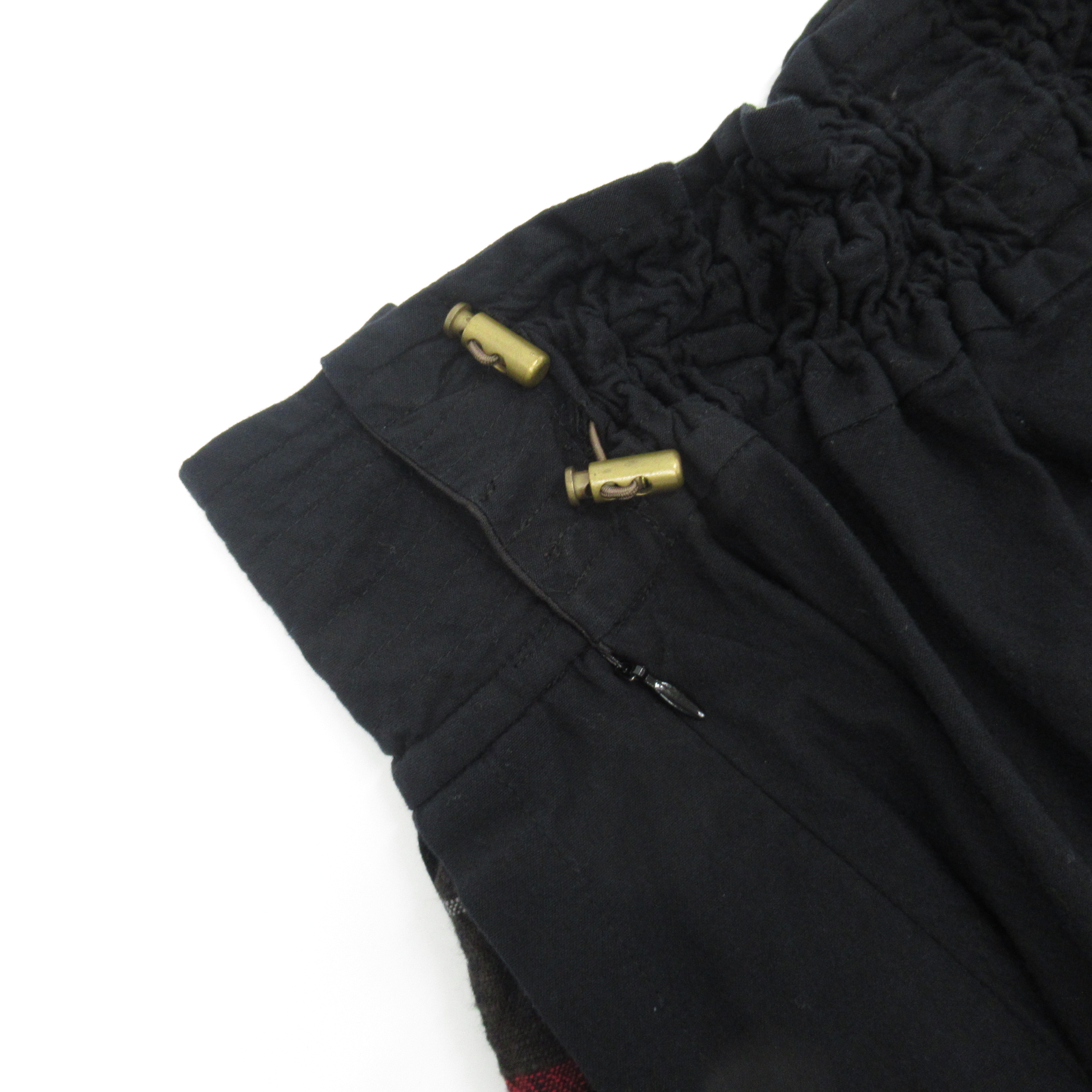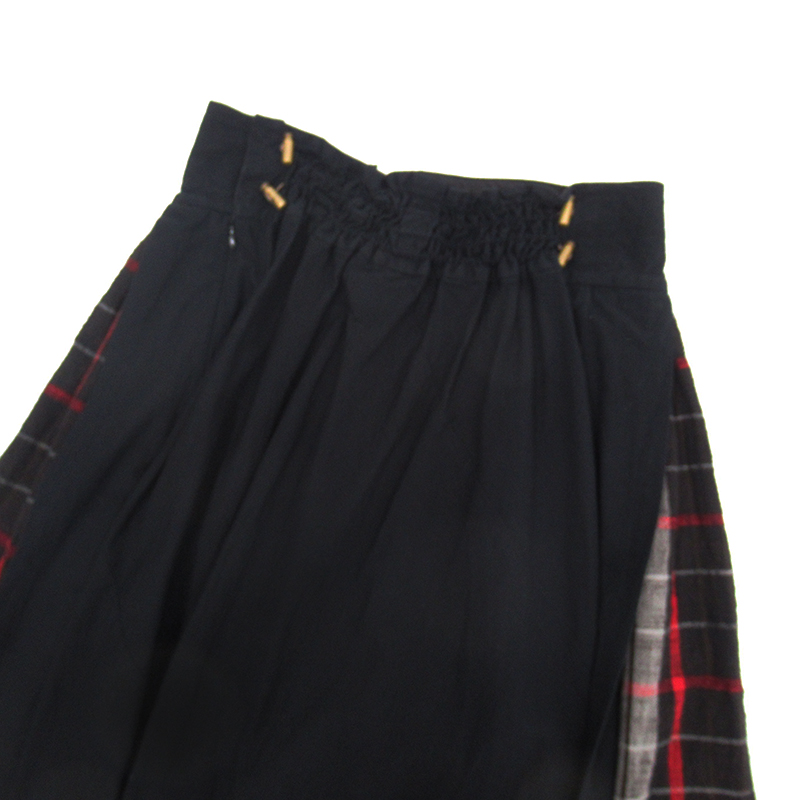 脇にチェック柄の生地を配色したサイド切替スカート。 ウエストは後ろゴム仕様、ストッパーで調整可能。左脇コンシールファスナー開きです。