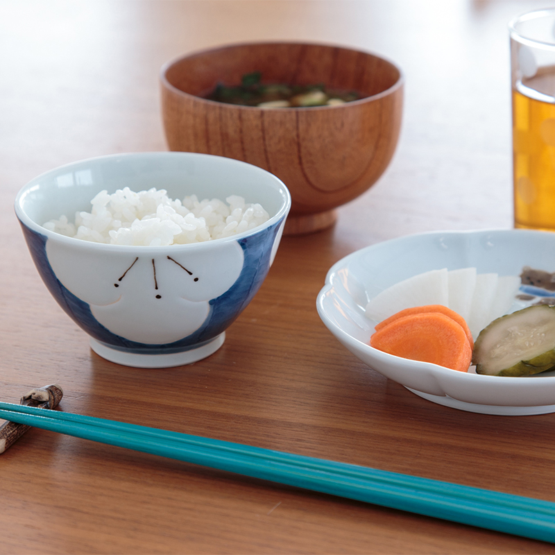 大胆に梅の花を配置したデザインが光るシリーズ。 ひとつひとつ職人さんが丁寧に手描きしています。 ちょっと丸みのある形がかわいらしく、お茶碗としだけでなく汁物を入れて使うのもおすすめ。 手の小さい方やお子様にも持ちやすい、少し小ぶりなサイズです。