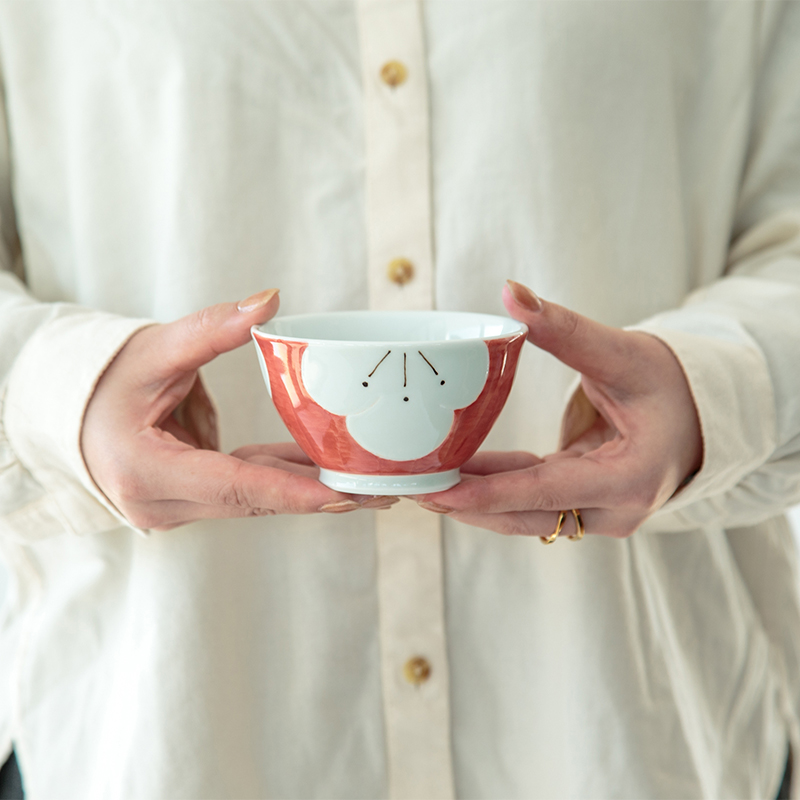 大胆に梅の花を配置したデザインが光るシリーズ。 ひとつひとつ職人さんが丁寧に手描きしています。 ちょっと丸みのある形がかわいらしく、お茶碗としだけでなく汁物を入れて使うのもおすすめ。 手の小さい方やお子様にも持ちやすい、少し小ぶりなサイズです。