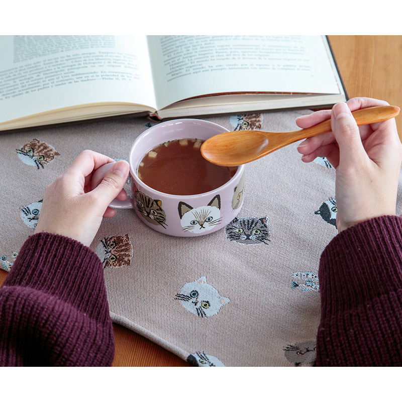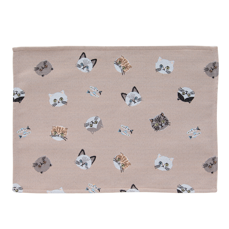 いろんな可愛いネコをちりばめた、オリジナルパターン生地のプレイスマット。