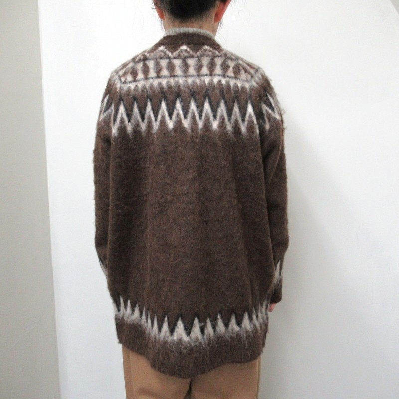 フェアアイル柄が目を引くオーバーサイズのカーディガン。
